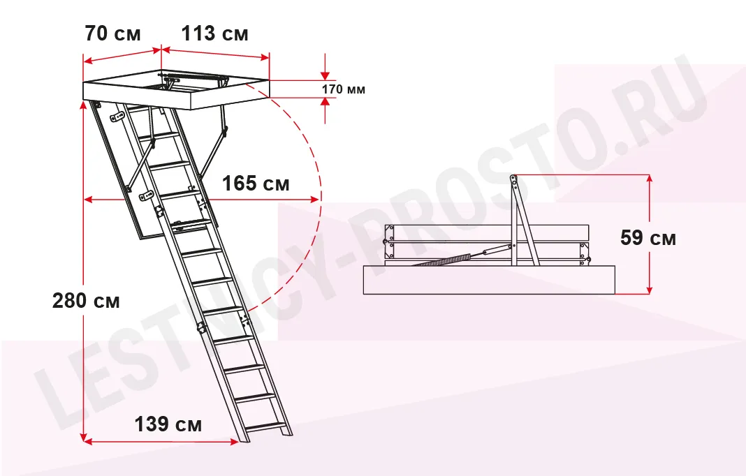 Указана цена исключительно на монтаж лестницы, любые дополнительные работы, связанные с несовершенством стен, углов, устранением дополнительных препятствий при установке лестницы - изменят стоимость работ.