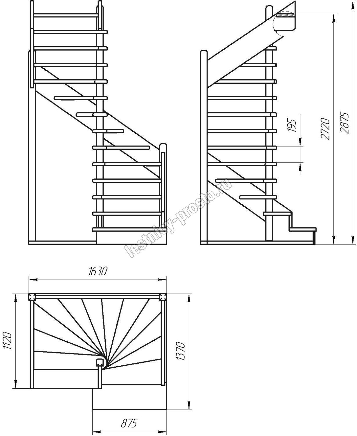 Деревянная межэтажная лестница ЛЕС-01 2720-2920 проем 1630-1120, Бук