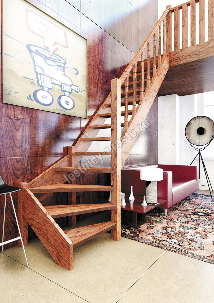 Деревянная межэтажная лестница ЛЕС-07 2693-2900 проем 2550-830, Бук