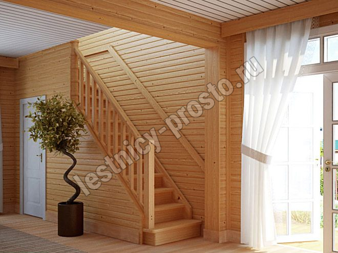 Ступени и поручень лестницы изготовлены из дуба, остальные элементы из сосны.