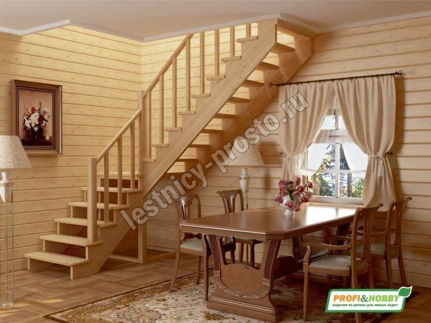 Базовый комплект включает в себя деревянные элементы лестницы и ограждения без какого-либо покрытия.