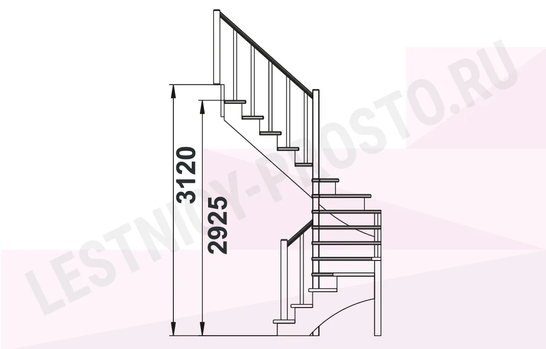Базовый комплект включает в себя деревянные элементы лестницы и ограждения без какого-либо покрытия.