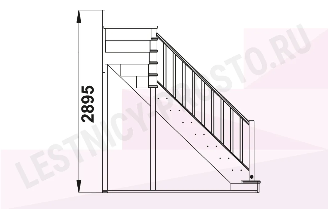 В производстве лестницы ЛС-215м под покраску используется сосна с небольшими изменениями цвета, что практически не влияет на ее механические свойства и почти незаметно при покраске в темные цвета. Базовый комплект включает в себя деревянные элементы лестницы с подступенками и ограждения без какого-либо покрытия.