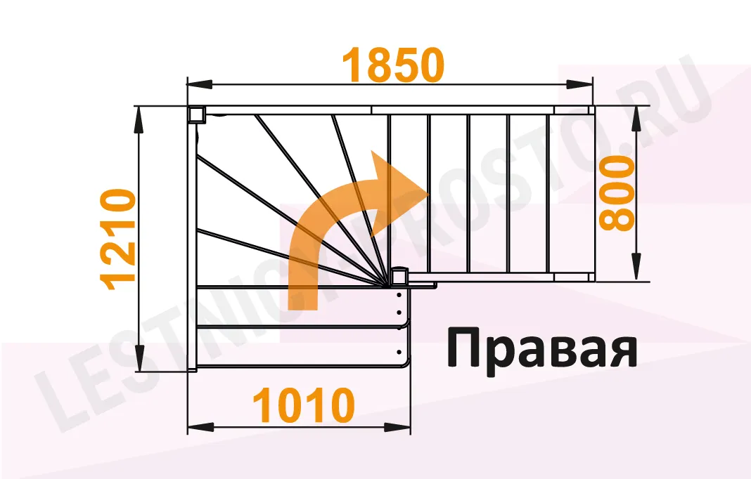Схема лестницы ЛС-92М/2 с поворотом направо