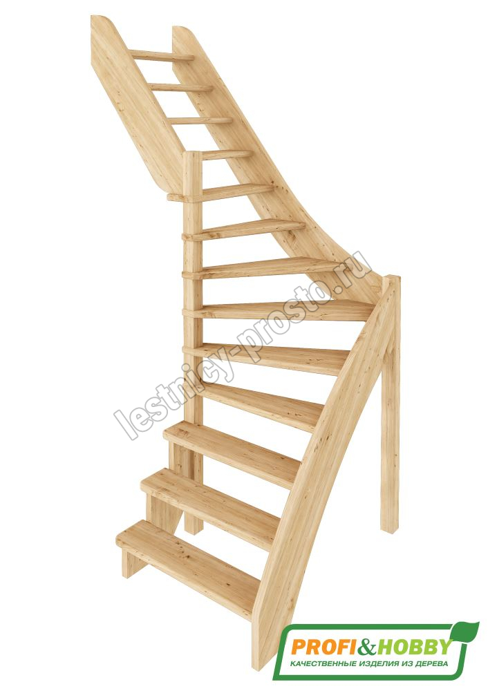 Базовый комплект включает в себя деревянные элементы лестницы без какого-либо покрытия.