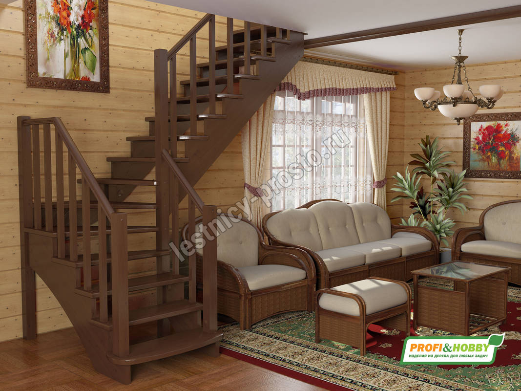 Базовый комплект включает в себя деревянные элементы лестницы и ограждения без какого-либо покрытия.