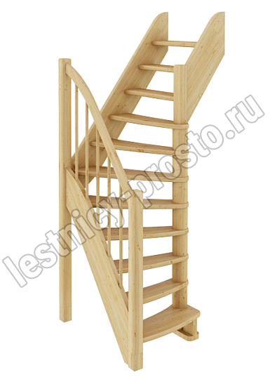 Базовый комплект включает в себя деревянные элементы лестницы и ограждения без какого-либо покрытия.