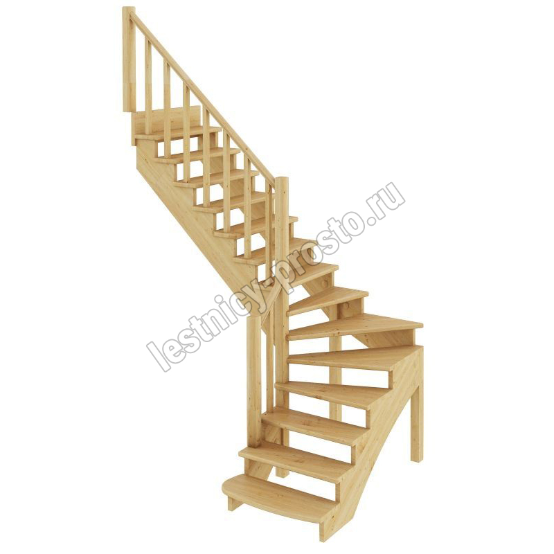 Базовый комплект включает в себя деревянные элементы лестницы с подступёнками и ограждение без какого-либо покрытия.