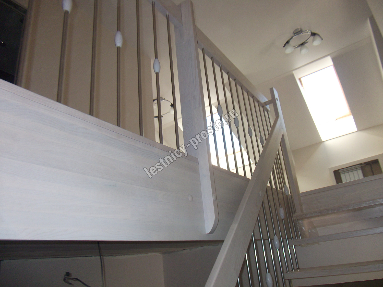 возможна комбинированная лестница: из сосны (ступени бук, ясень, дуб);