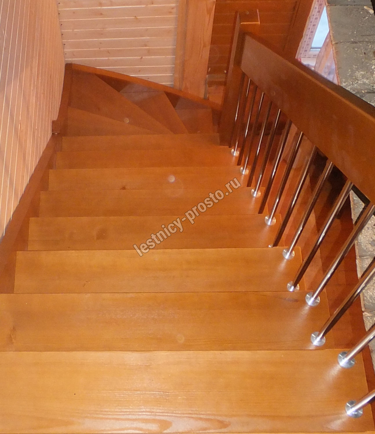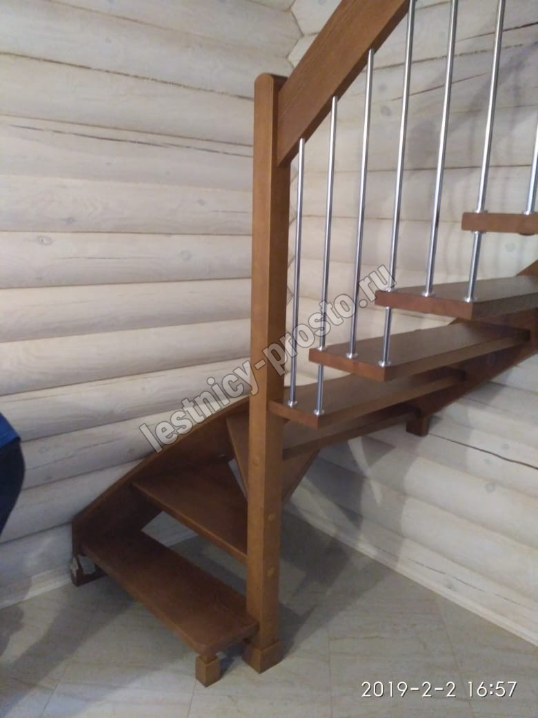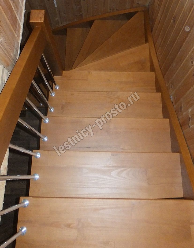 возможна комбинированная лестница: из сосны (ступени бук, ясень, дуб);