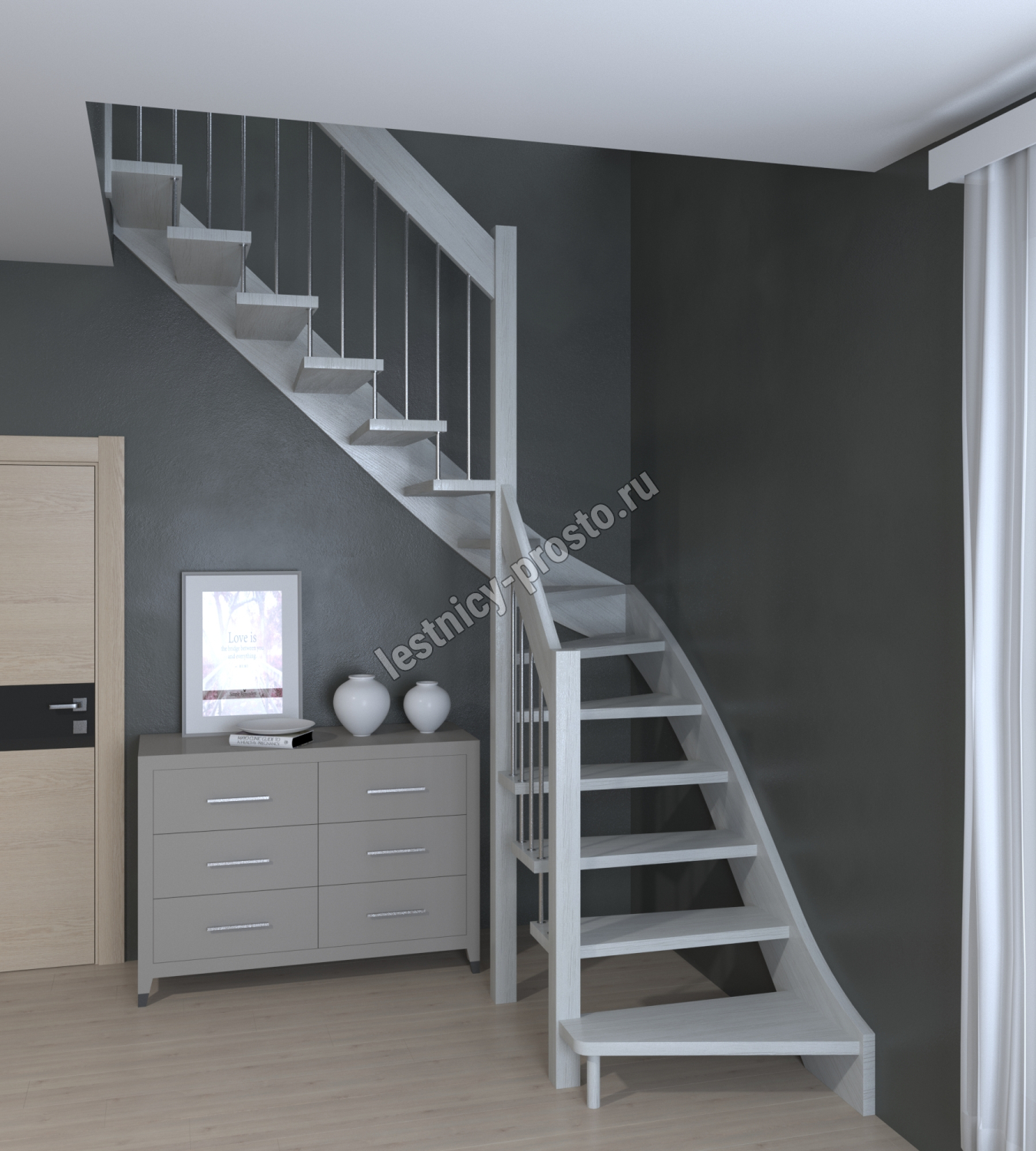 Лестница Prosto Console г-образная забежная сосна, h300 см