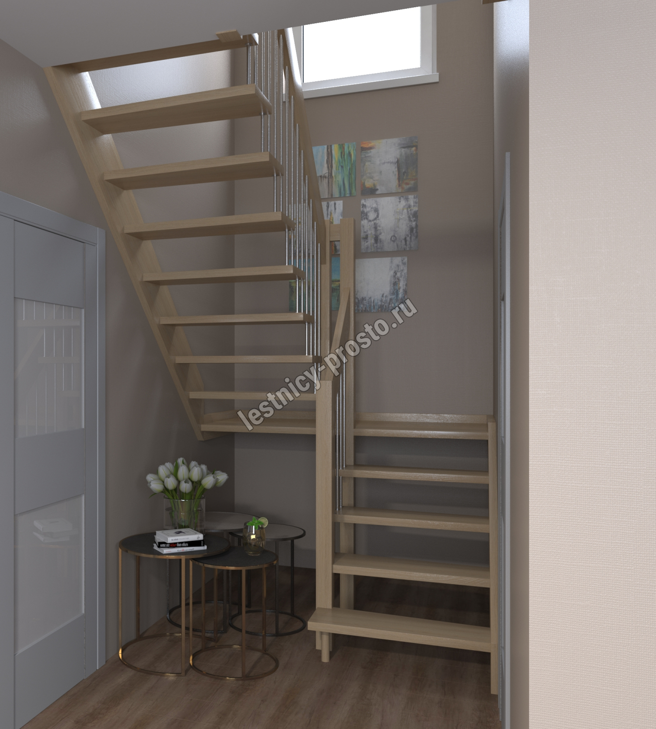 Лестница Prosto Console п-образная забежная, ясень h280 см