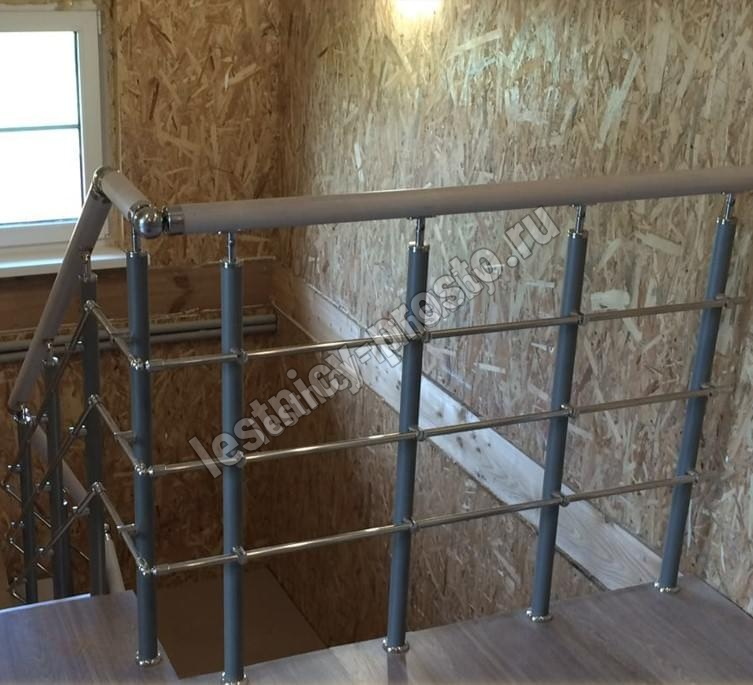 Ограждение для П-образной лестницы PROSTO DUE/DOUBLEс крашеными стойками и струнами
