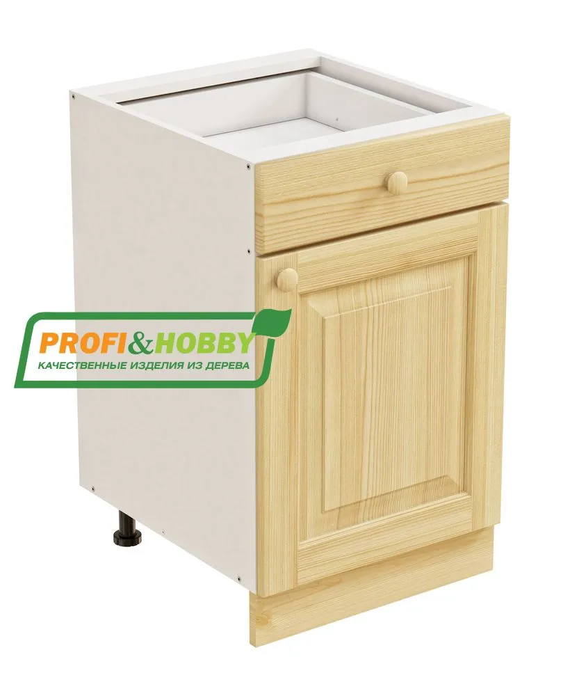 Тумба 1 дверь 1 ящик 500х530х720 + фасад сосна бесцветный акриловый лак
