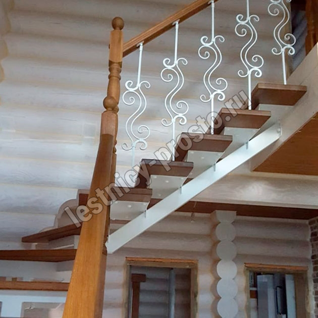 Лестница PROSTO MONO Г-образная h247.5 см, ступени лиственница