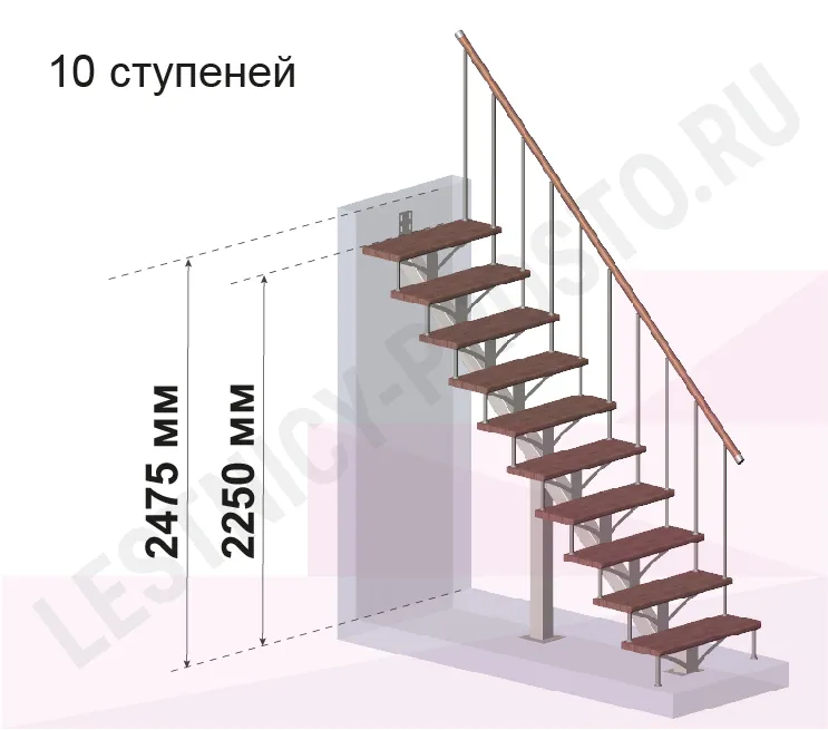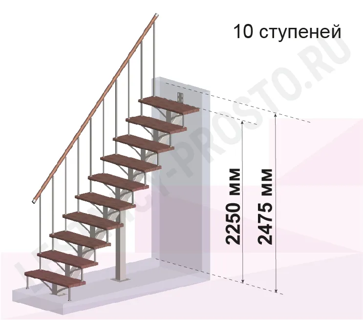 Лестница PROSTO MONO прямая, h247.5 см, ступени лиственница
