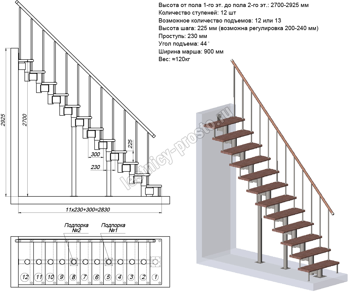 Каркас лестницы представляет собой набор модулей, которые комплектуются уже готовыми к монтажу.