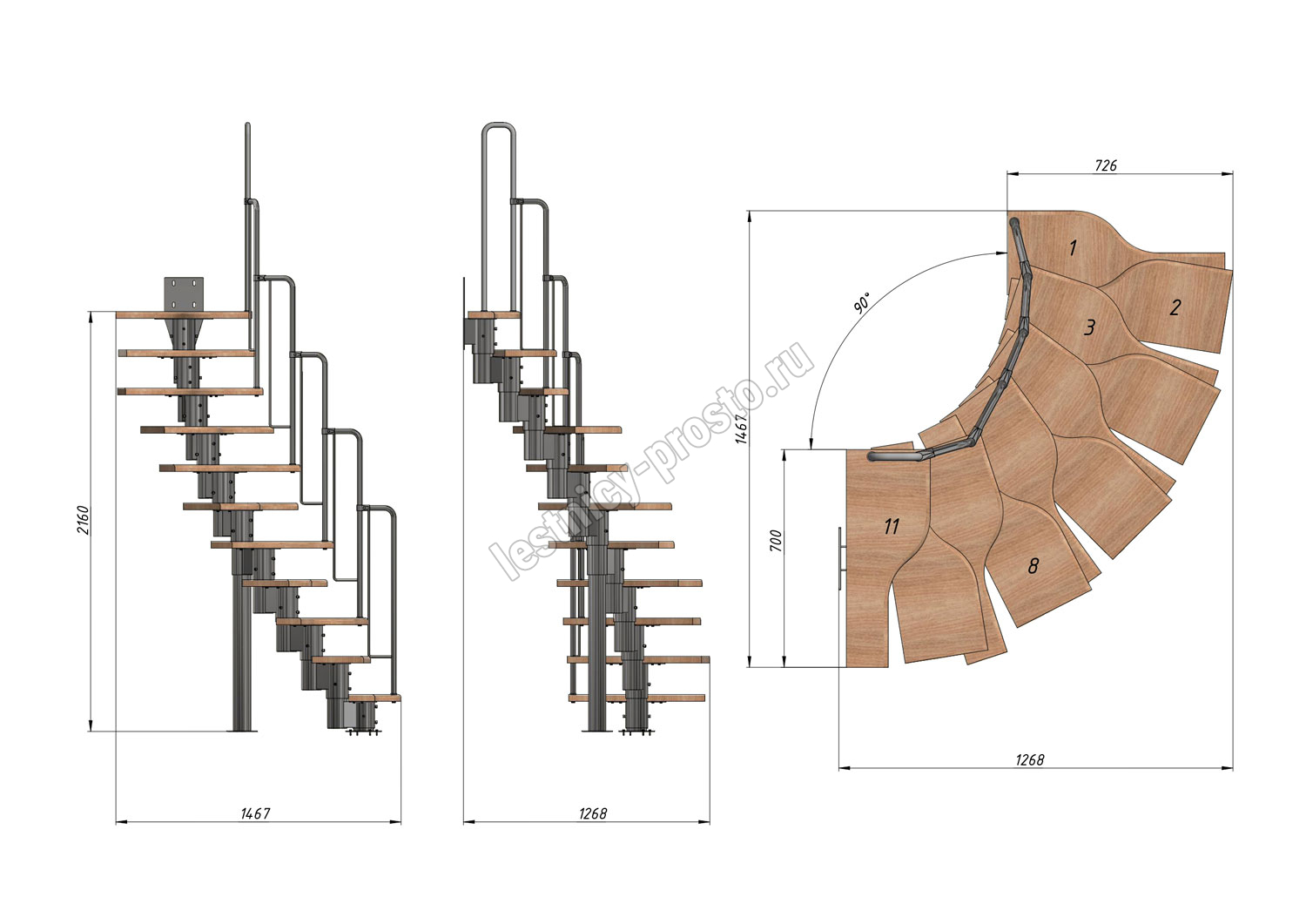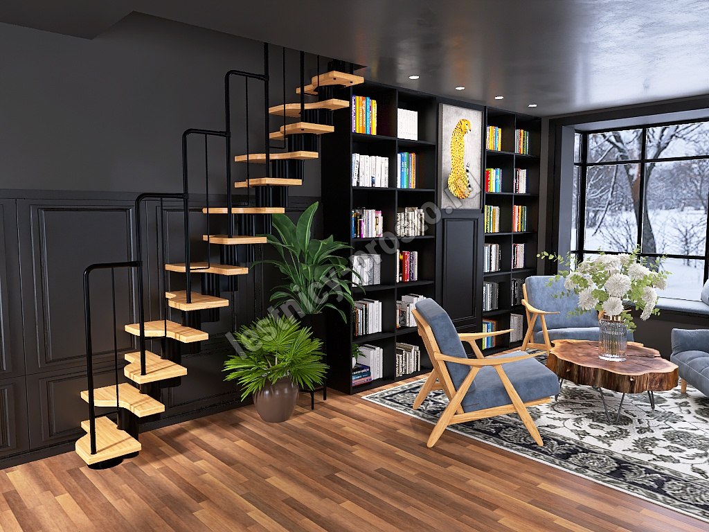 Лестница Prosto Urban Black гусиный шаг 700 мм, h198-288 см (11 ступеней), бук