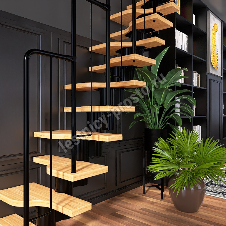 Лестница Prosto Urban Black гусиный шаг 700 мм, h216-312 см (12 ступеней), берёза мультиплекс