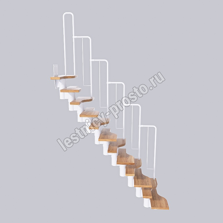 Лестница Prosto Urban White гусиный шаг 600 мм, h198-288 см (11 ступеней), берёза мультиплекс
