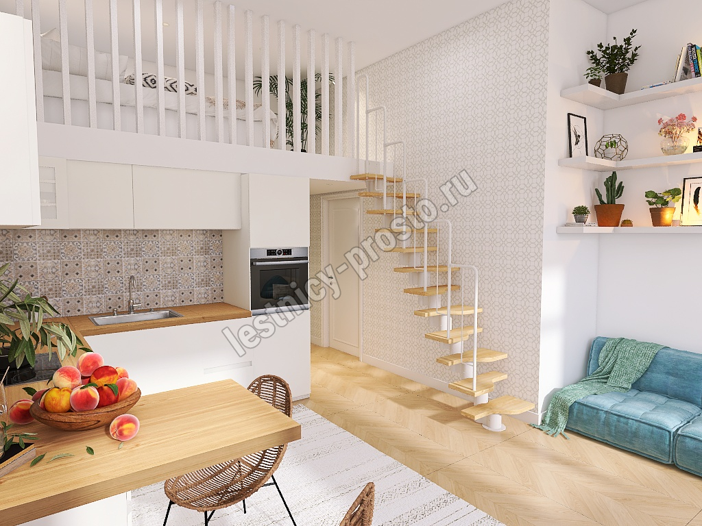 Лестница Prosto Urban White гусиный шаг 600 мм, h234-336 см (13 ступеней), дуб