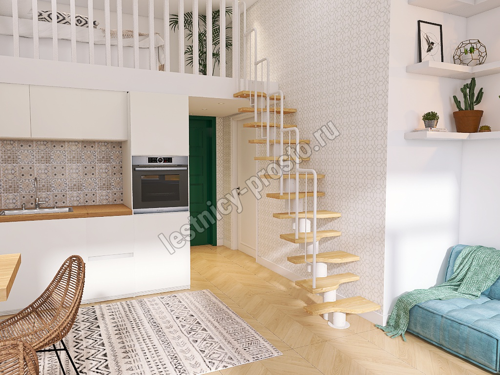 Лестница Prosto Urban White гусиный шаг 700 мм, h180-264 см (10 ступеней), бук