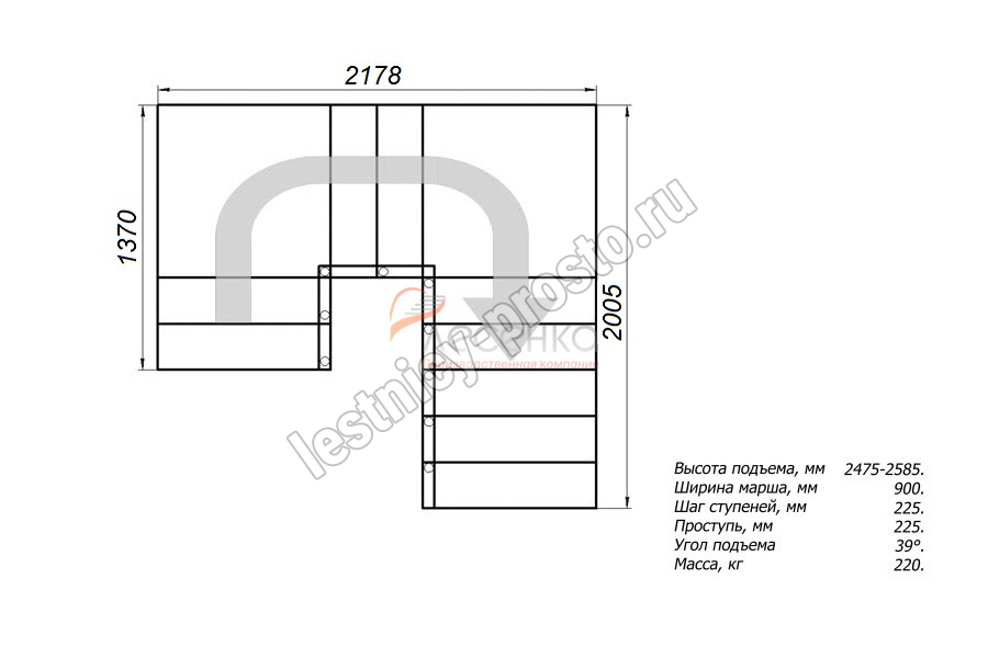 Модульная лестница Комфорт 225 2475-2585, Серый, Бук, Нержавеющая сталь