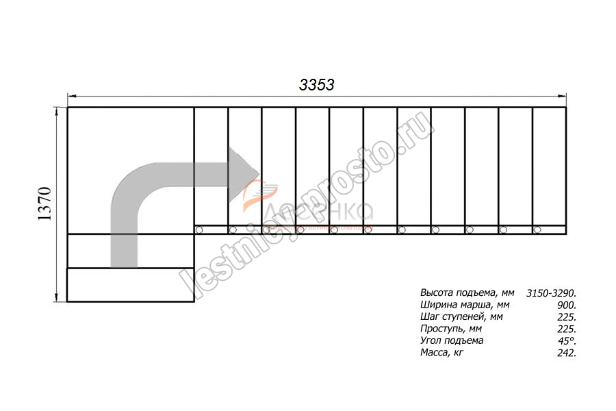 Модульная лестница Статус 225 3150-3290, Серый, Сосна, Крашеная