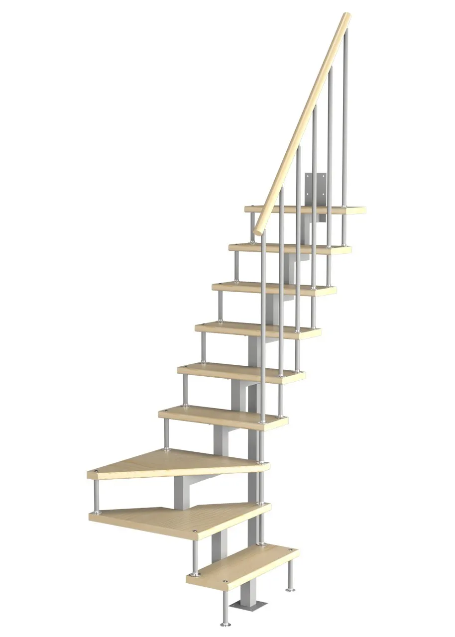 Модульная малогабаритная лестница Компакт 2025-2250, Белый, Сосна, Нержавеющая сталь