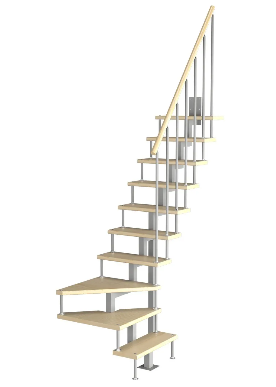 Модульная малогабаритная лестница Компакт 2250-2475, Серый, Бук, Нержавеющая сталь