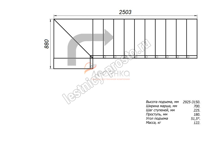 Количество ступеней на первом и втором марше может меняться между собой в зависимости от размера проема, при этом общее количество ступеней не меняется!!!