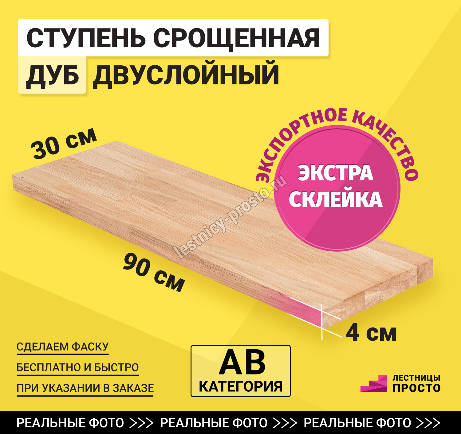 Базовая ступень не имеет фасок, если вам нужна фаска, укажите на это в комментарии к заказу - мы скруглим одно ребро ступени и это совершенно не повлияет на сроки доставки и стоимость.