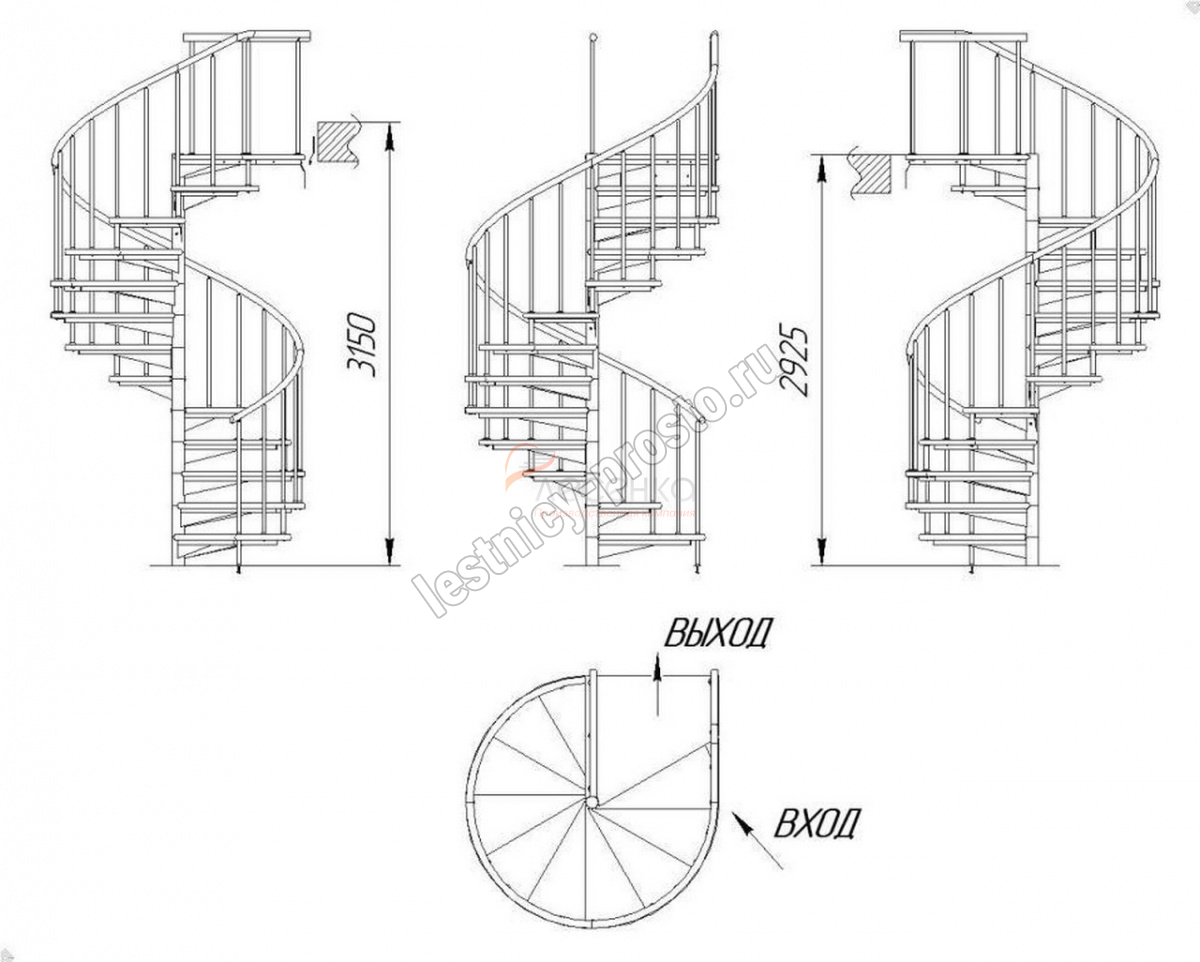 Винтовая лестница ЛЕС-1,8 высота 2925-3150, Черный, Сосна