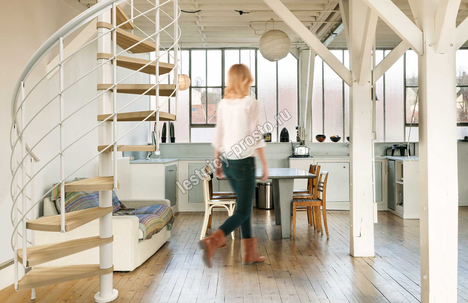 Винтовая лестница Montreal STYLE белая, d140 см, h301-329 см