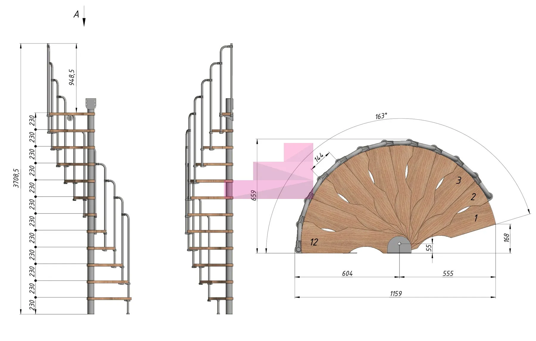 Винтовая лестница PROSTO MINI 60×120 см, h322-345 см |