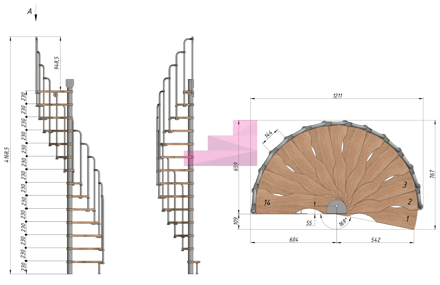 Винтовая лестница PROSTO MINI 60×120 см, h276-299 см |