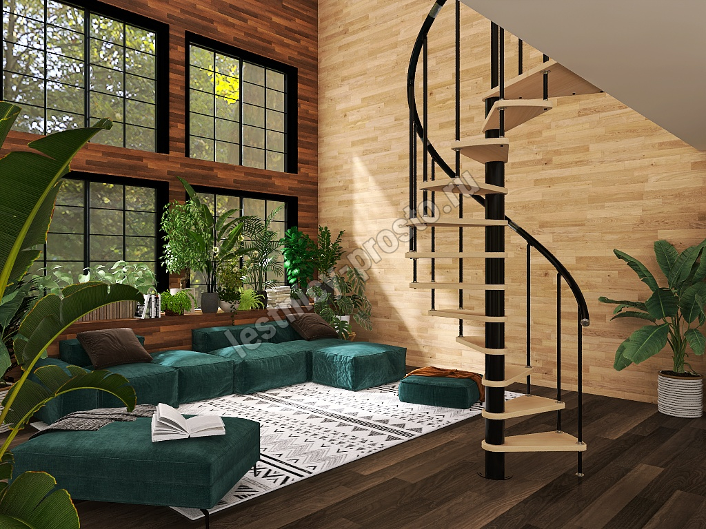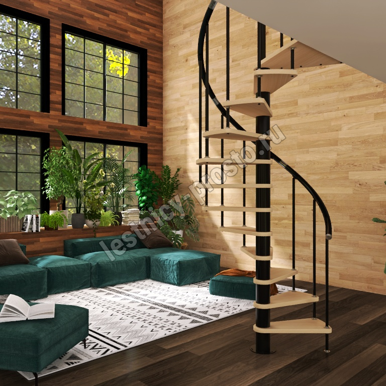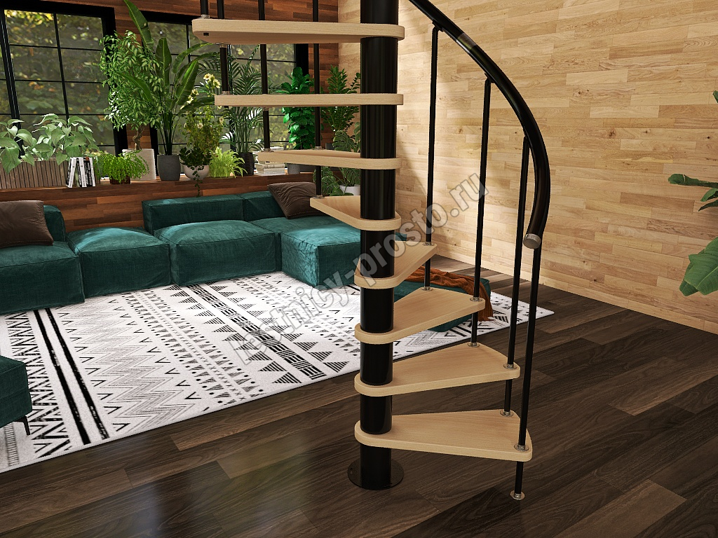 Винтовая лестница Prosto Spiral Black D140см, h260.5-304.6 см, бук