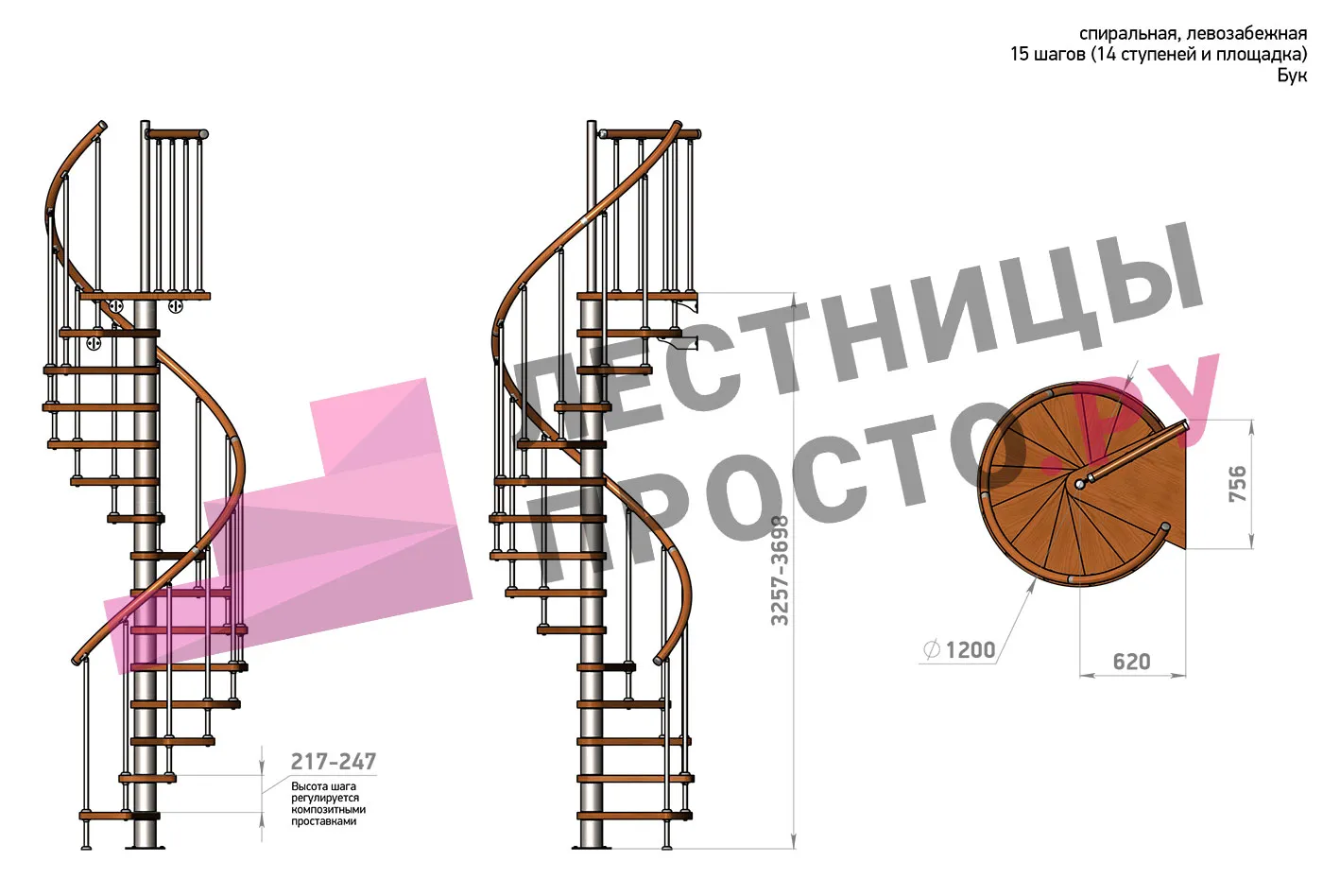 | Винтовая лестница Prosto Spiral Black D120см, h303.9-348,1 см, бук |