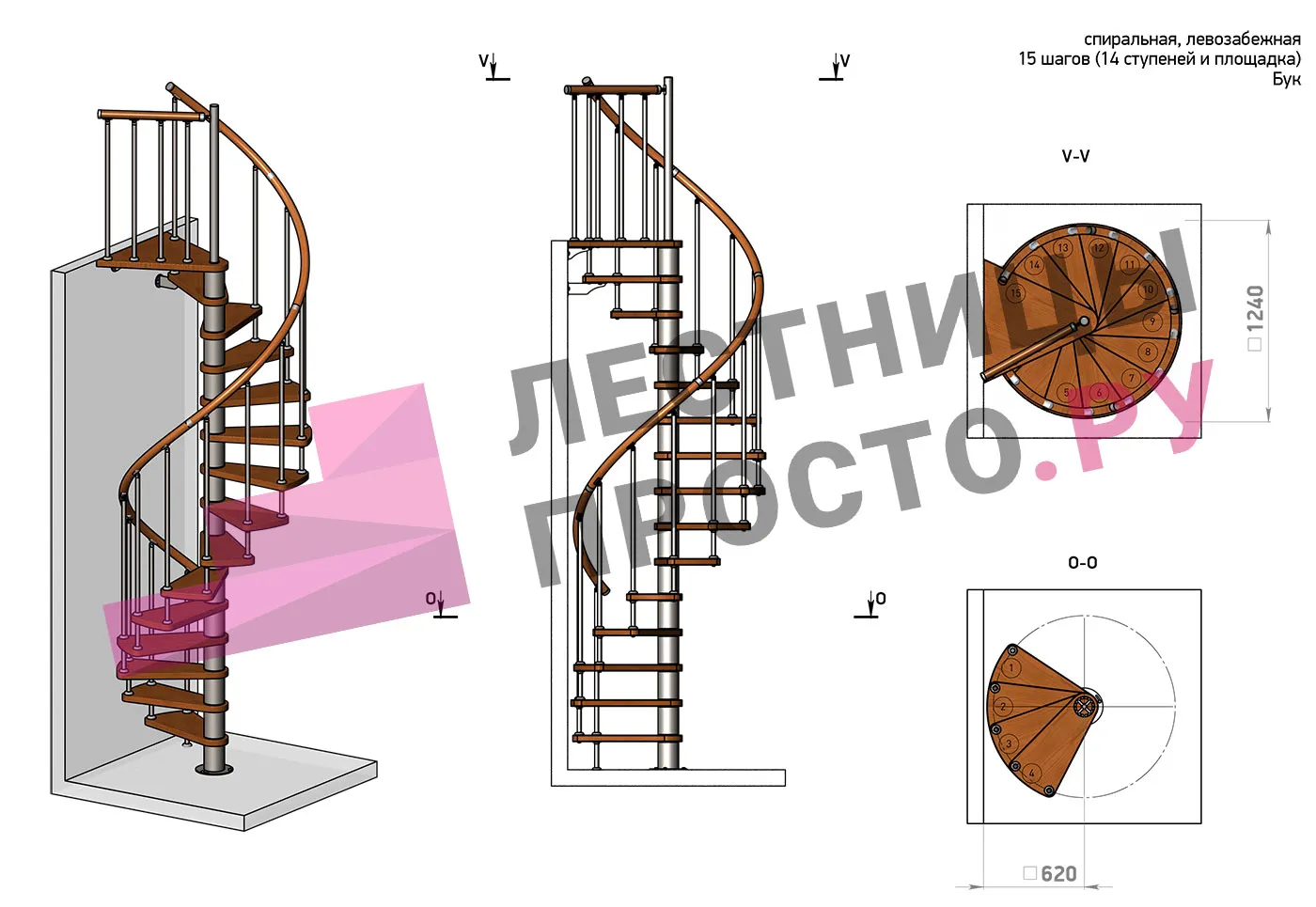 | Винтовая лестница Prosto Spiral Black D140см, h282.2-326,3 см, бук |