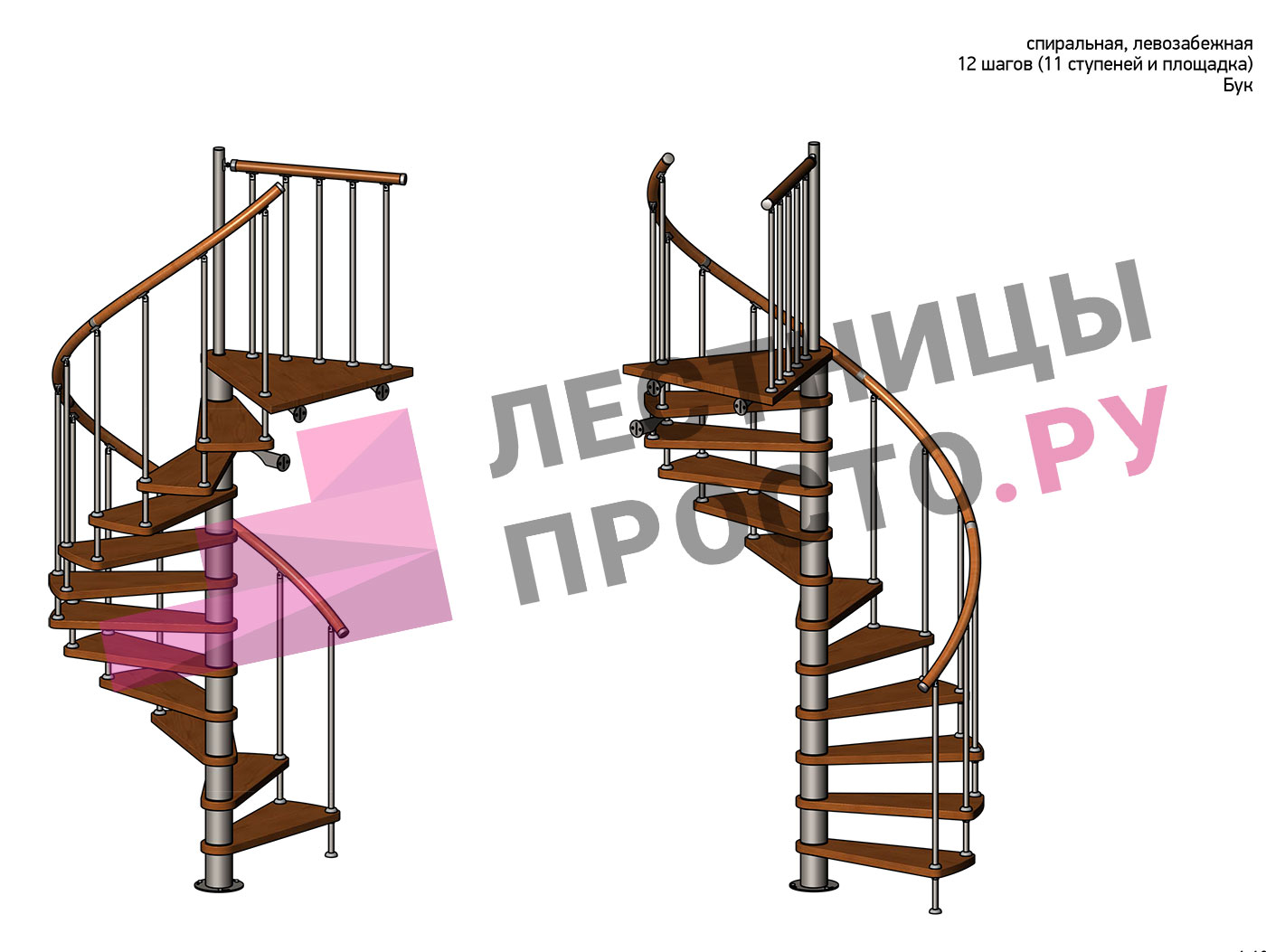 Правая, d=160см, 11 ступеней + площадка