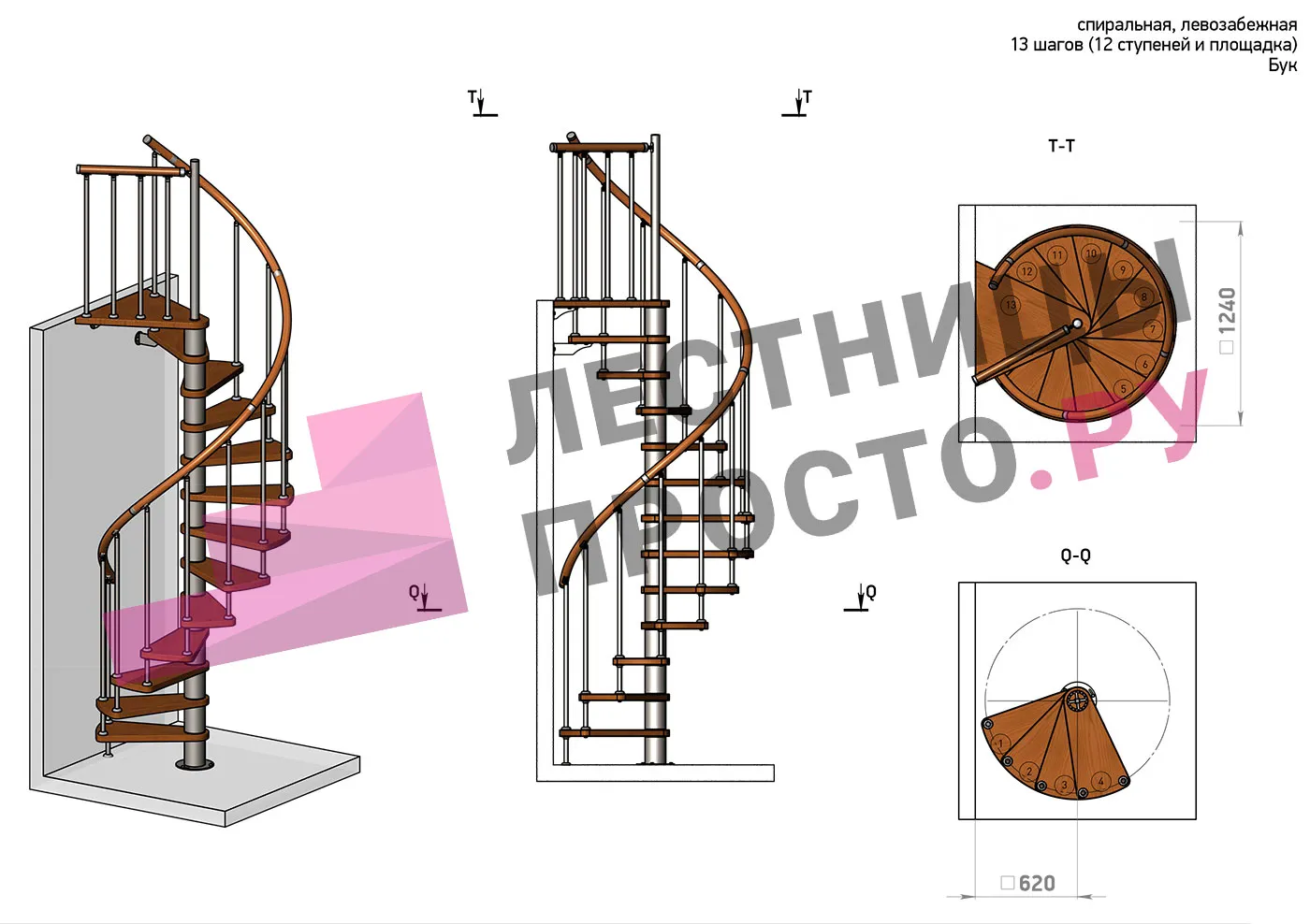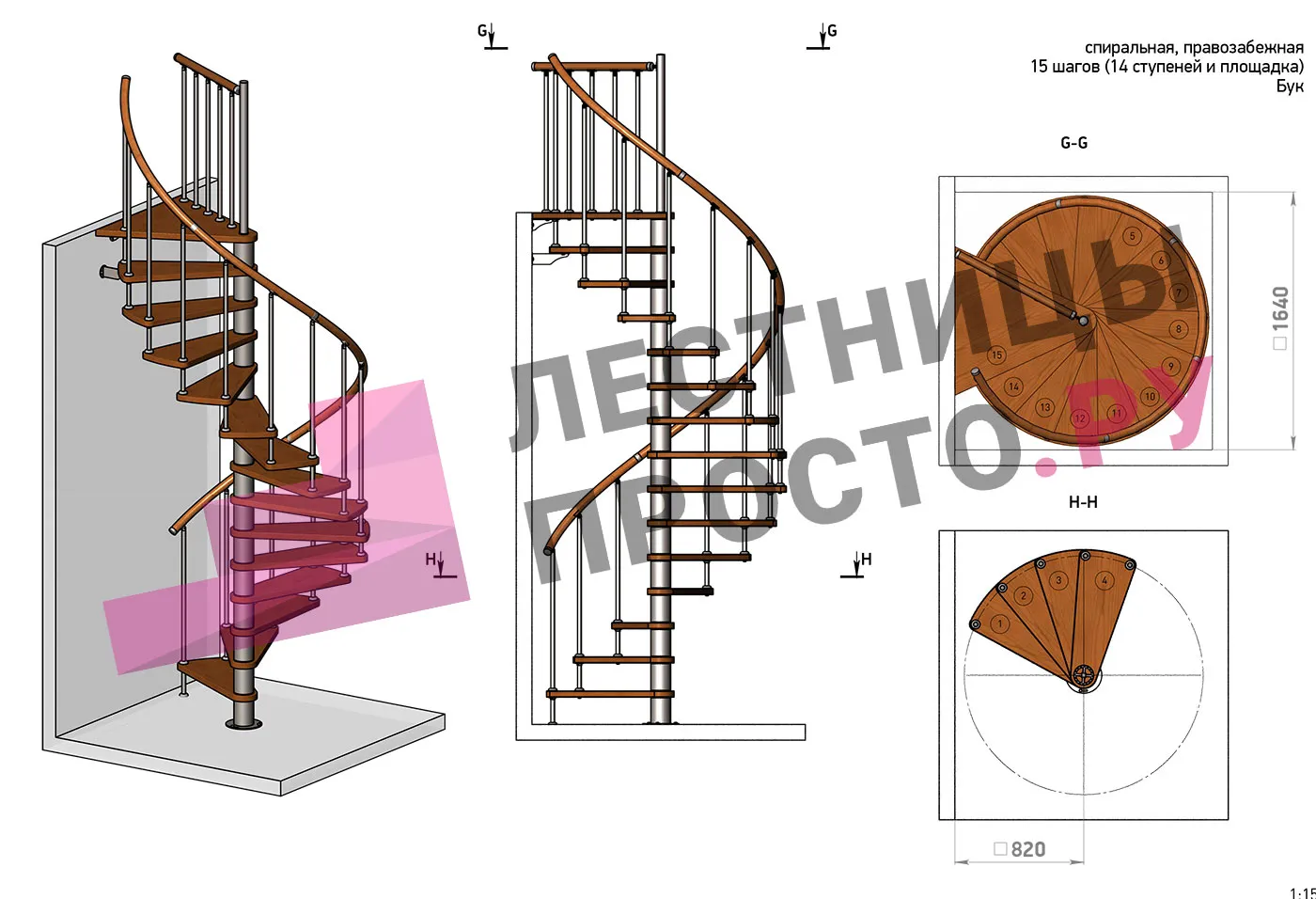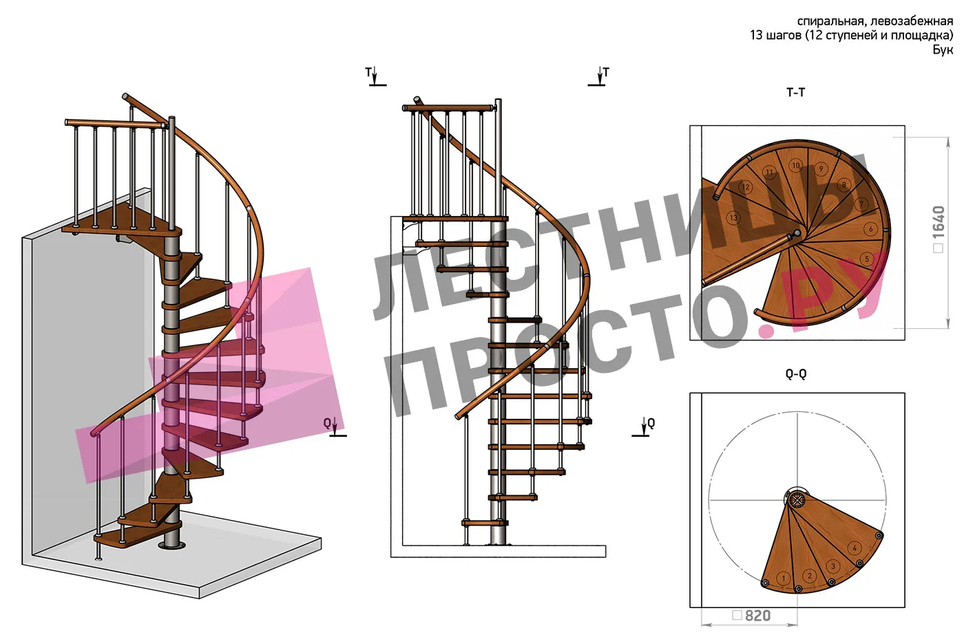 Элементы каркаса, ограждение, ступени, площадка, необходимый для сбора лестницы крепёж.