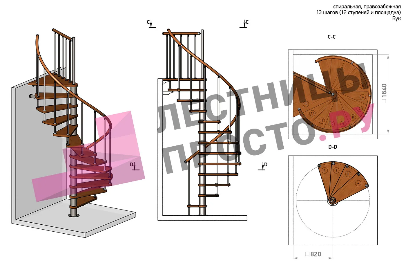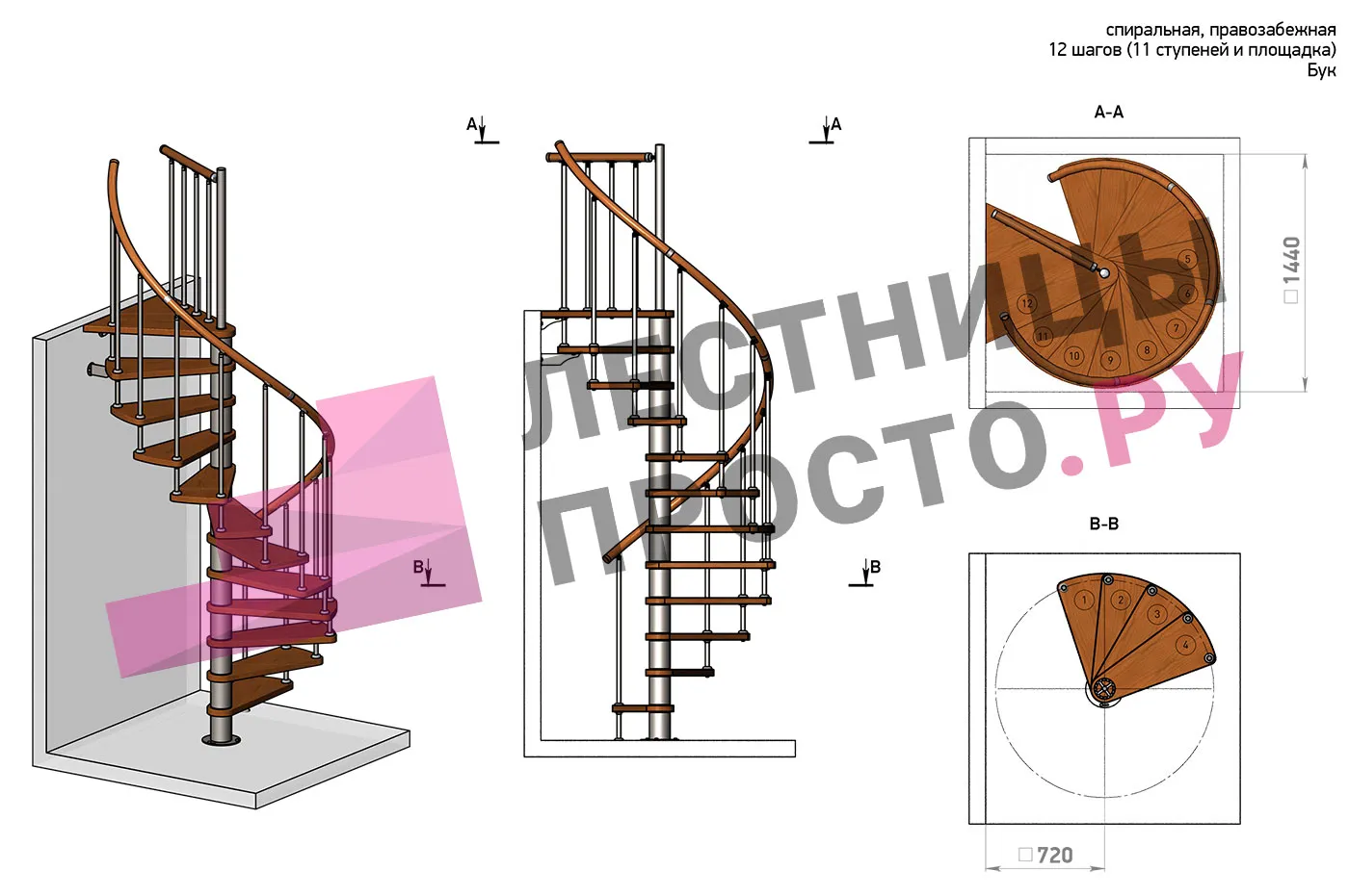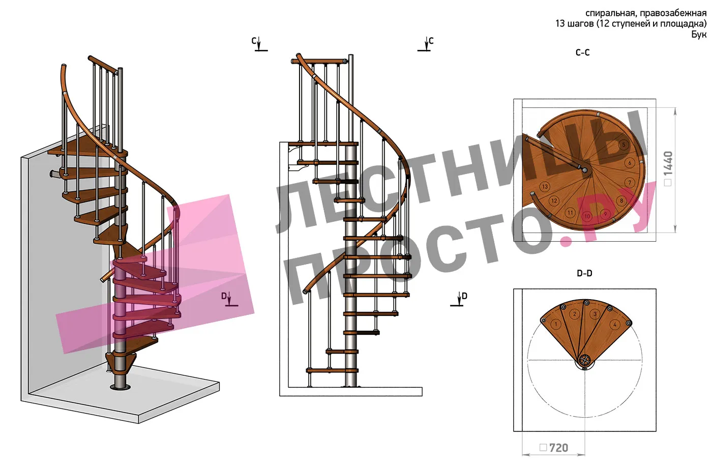 Высота ступеней регулируется с шагом 3 мм. в пределах 217-247 мм., благодаря чему, лестница прекрасно подгоняется под необходимую высоту.
