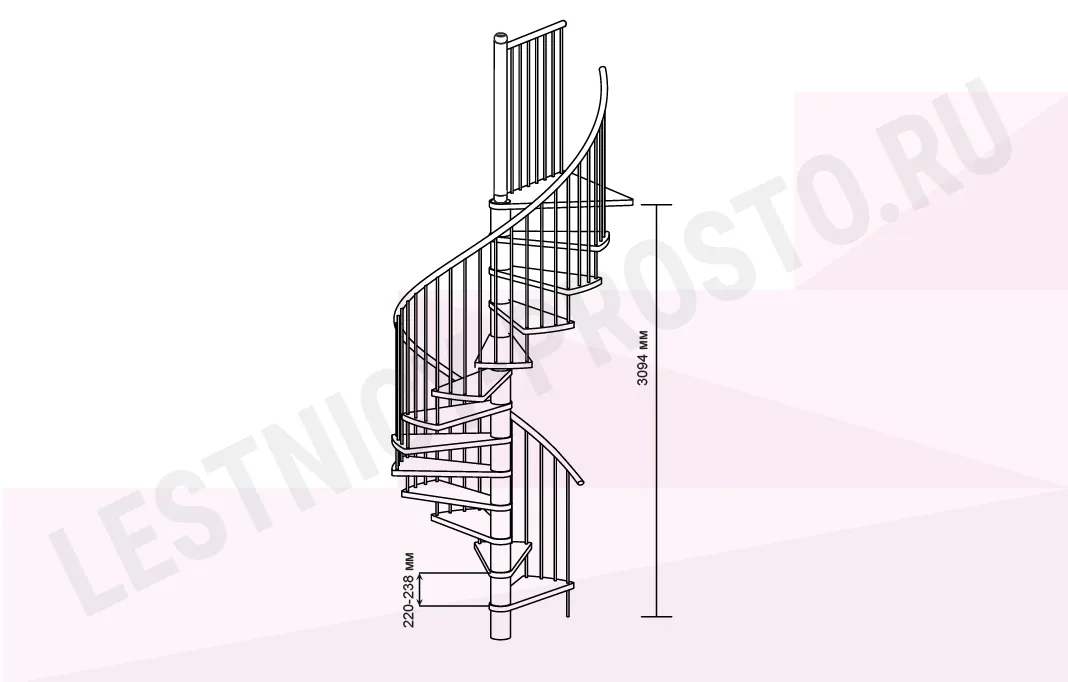 Винтовая лестница SPIRAL EFFECT d140 см, серебро, лакированный бук