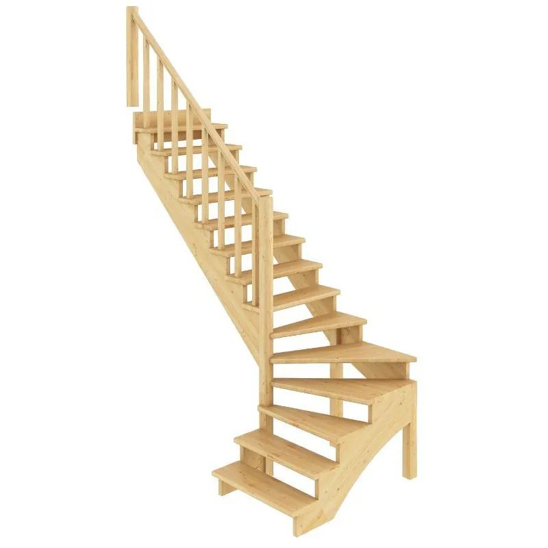 Компактная надёжная лестница. Ступени толщиной 30 мм, изготовлены из массива берёзы по технологии Multiplex, лакированные. Все металлические части оцинкованы, горячим способом и покрыты порошковой краской - черного цвета; Лестница имеет надёжную несущую стальную конструкцию.